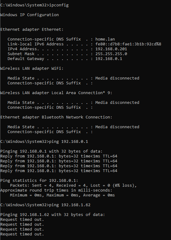 Я установил свой UCG Fiber в воскресенье и запустил его, сначала обновив до файрвола на основе зон, а уже потом создавал правила. Я обнаружил, что по умолчанию не могу просматривать между неизолированными VLAN, и не понимаю, почему. Я создал тестовый VLAN со следующими настройками, который является VLAN 2:  Файрвол правила, которые я установил, стандартные, как показано ниже: Я установил родной VLAN на порту 2 UCGF как VLAN 2, к которому подключен ПК с IP 192.168.1.62. Порт 1 имеет родной VLAN как 1, с проводным ПК на 192.168.0.201. ПК с IP 192.168.0.201, на VLAN 1, может пинговать шлюз по умолчанию и получать интернет и т.д., как и ожидается, но при пинге ПК (192.168.1.62) на VLAN 2, он не удается: Делая то же самое в обратном направлении также не удается: Кто-нибудь сталкивался с чем-то подобным раньше и может дать какие-нибудь советы?