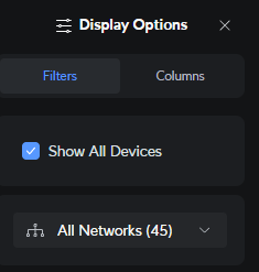 Страница клиентских устройств -> Отображение -> Фильтры. Добавить возможность исключать сети ("Not") или выбирать несколько сетей ("multi-select"). Было бы круто, если бы фильтр запоминал настройки при повторном заходе.