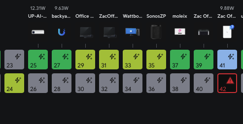 Не уверен, что здесь происходит. У меня есть один существующий PoE Chime, который работает отлично. Я купил ещё два, и ни один из них не получает IP-адрес. Попробовал несколько кабелей, несколько свитчей (Pro Max 16 Poe и Pro Max 48 PoE), делал заводскую сброс. Chimes потребляют около 1 ватта энергии, когда подключены к PoE-портам, но IP-адреса так и не получают. Кажется, они постоянно переключаются между состоянием STP blocked и просто бездействуют, потребляя энергию, но так и не получают IP. Просто пример коммутации ниже, потому что картинки — это хорошо. Кажется невероятным, что мне достались два бракованных устройства (хотя они были в одном заказе). У кого-нибудь был подобный опыт? Unifi Network 9.0.114UXG Pro 4.1.10Switches all on 7.1.26