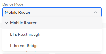 LTE Passthrough: роутер назначает LTE WAN IP напрямую первому подключенному клиенту. Другие устройства по-прежнему могут получить доступ к интернету через роутер, но не получат тот же IP.