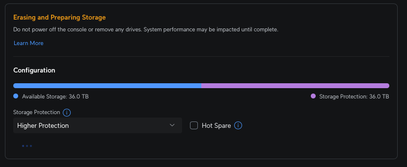 Другая проблема в том, что том показывает 24ТБ, и что бы я ни делал, не могу заставить его расшириться до 36ТБ. Нажатие кнопки "Reformat" вроде бы немного крутит, но ничего не происходит. @UI-Glenn, есть ли способ принудительно отформатировать NAS Pro из командной строки? Единственное, что я могу придумать, это сброс настроек до заводских.