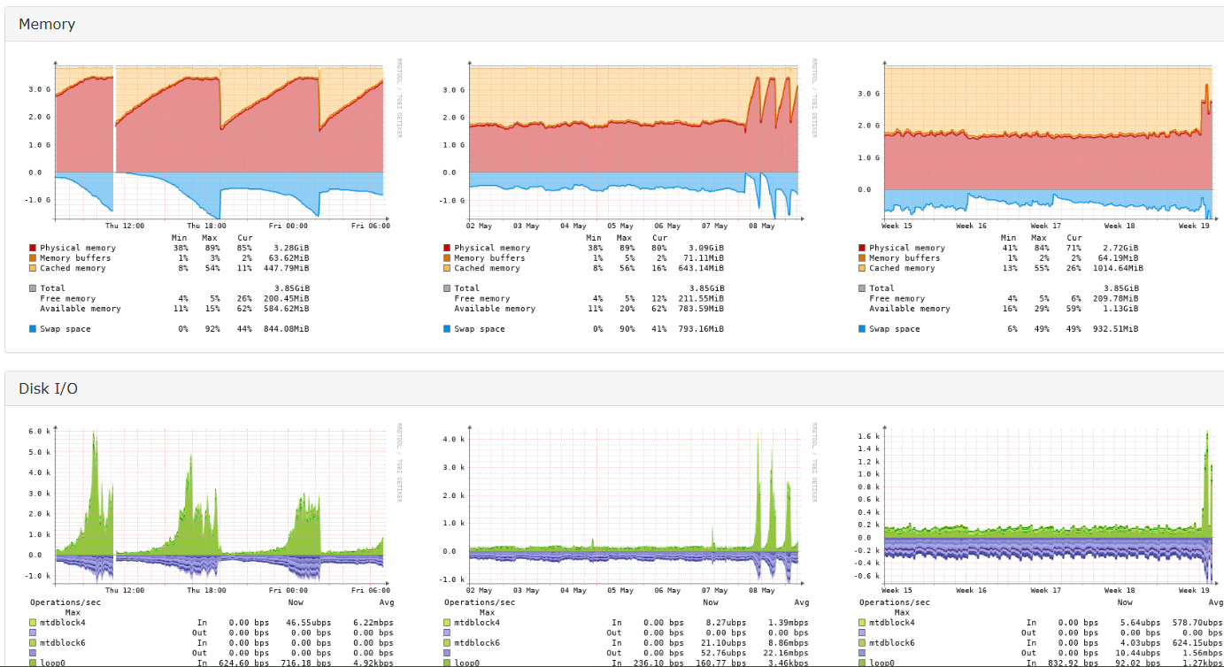 Внезапно, видимо, с обновлением несколько дней назад, UNVR становится нестабильным через некоторое время. Мониторинг SNMP показывает скачки использования памяти и I/O. https://img.community.ui.com/1382298e-b0a6-49b5-a49f-83cee6c684eb/questions/89af57ee-77f8-40cb-9343-7f8d860c7ce7/264413ee-833e-409b-87b4-017af1e3858e Какие мысли?